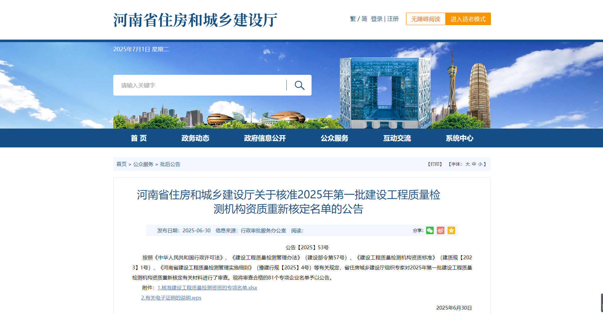 熱烈祝賀我司通過河南省住建廳2025年第一批建設(shè)工程質(zhì)量檢測機構(gòu)資質(zhì)重新核定!!!